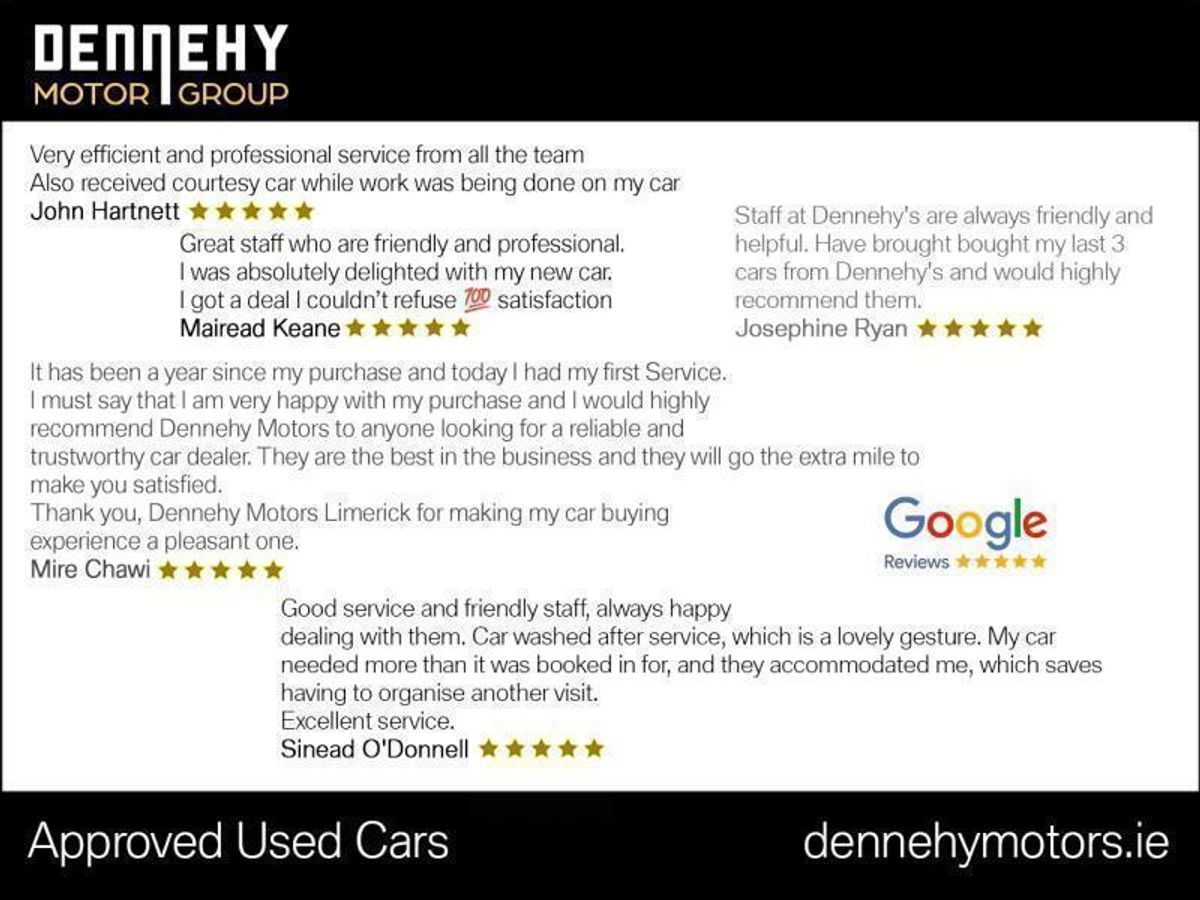 A detailed personalised video is available to answer any queries. To book a test drive or reserve your new car simply phone or email and one of our team will be in touch. We are open 9-6 Monday to Friday, 9.30 - 4.00 Saturday. We can deliver on your additional ownership needs including parking sensors, tow bar, window tints etc. With competitive in-house finance, we can tailor a payment plan and assist you in protecting the value of your new car too. Your car will come fully history checked, with a Dennehy Motors warranty, professionally serviced, valeted and can be delivered nationwide. Choose multi award winning SIMI member Dennehy Motors for no jargon, no hassle, no confusion. *Per Week Based on 20% Deposit or Trade-in, Term 60 mths, Typical Rate of 9.9%