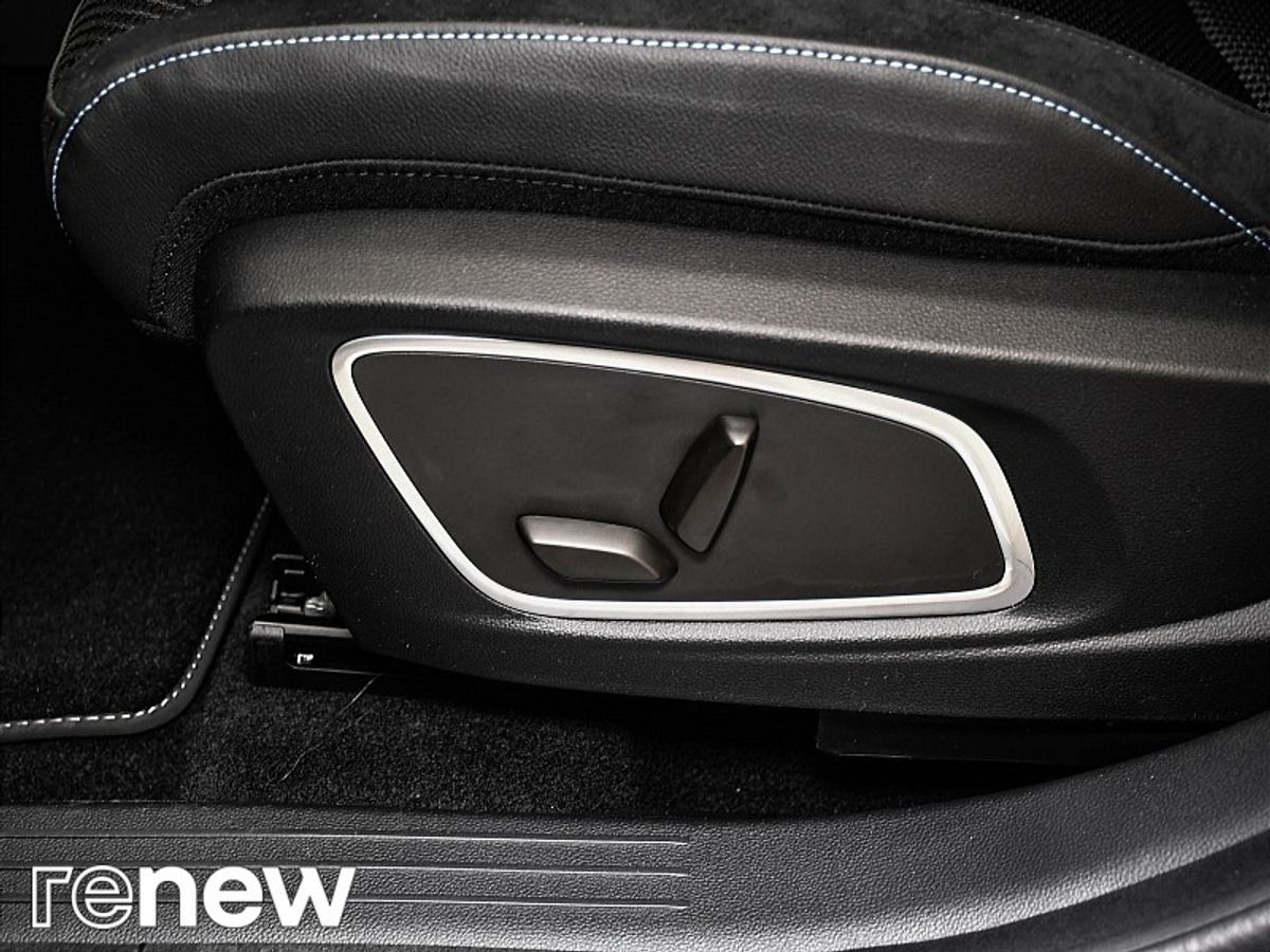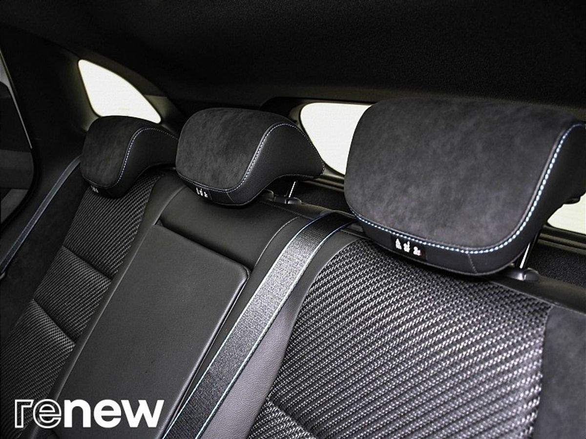 - Premium Alcantara upholstery with blue stitching and tricolour accents