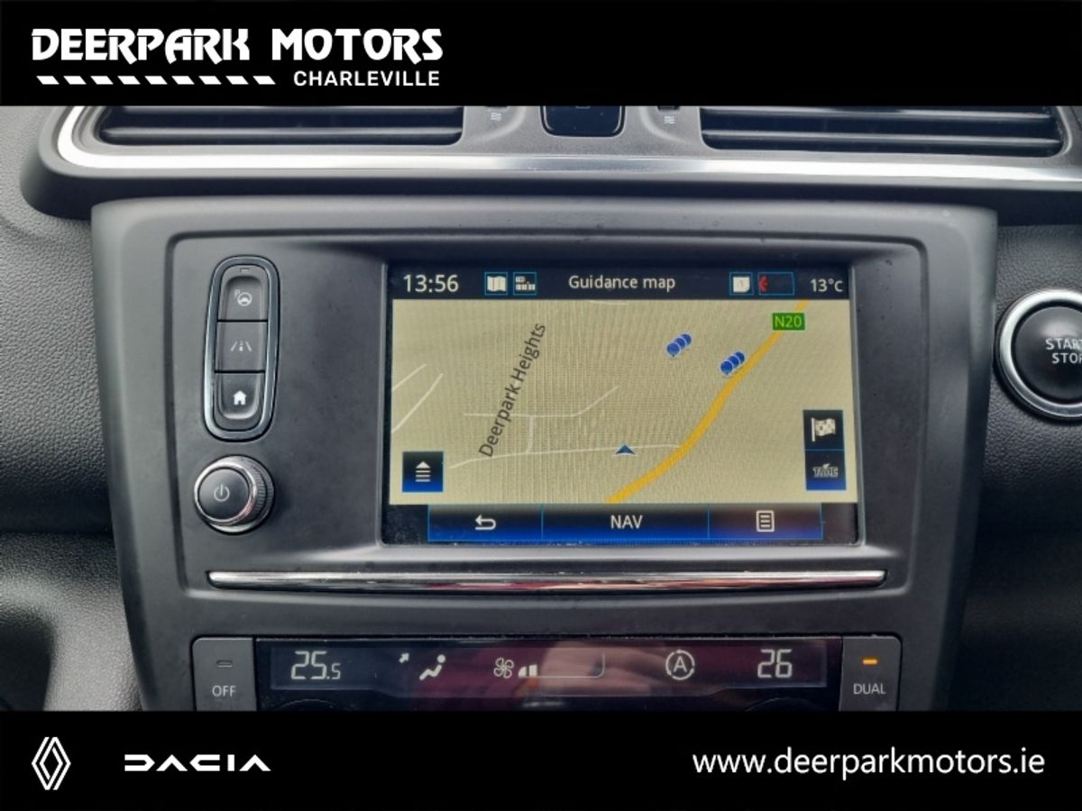 High spec Kadjar Signature S Nav with heated leather seats, reverse camera, all round sensors, fully serviced with warranty, we welcome your trade in and arrange finance at excellent rates, contact Deerpark Motor's Charleville on 063 89344. Due in next week.